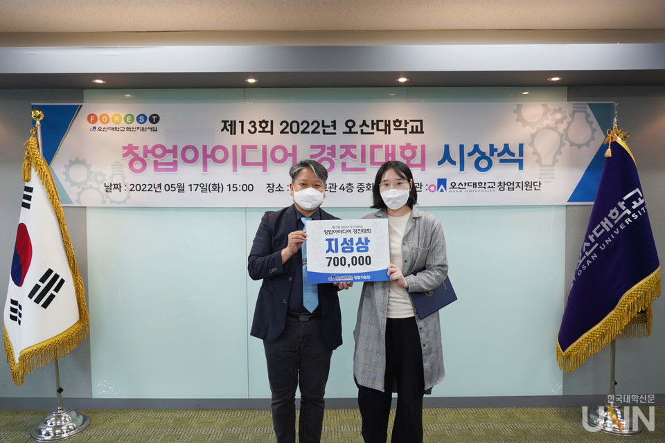 [한국대학신문 이원지 기자] 오산대학교(총장 허남윤) 창업지원단은 17일 종합정보관 4층 중회의실에서 제13회 창업아이디어 경진대회 시상식을 개최했다.
