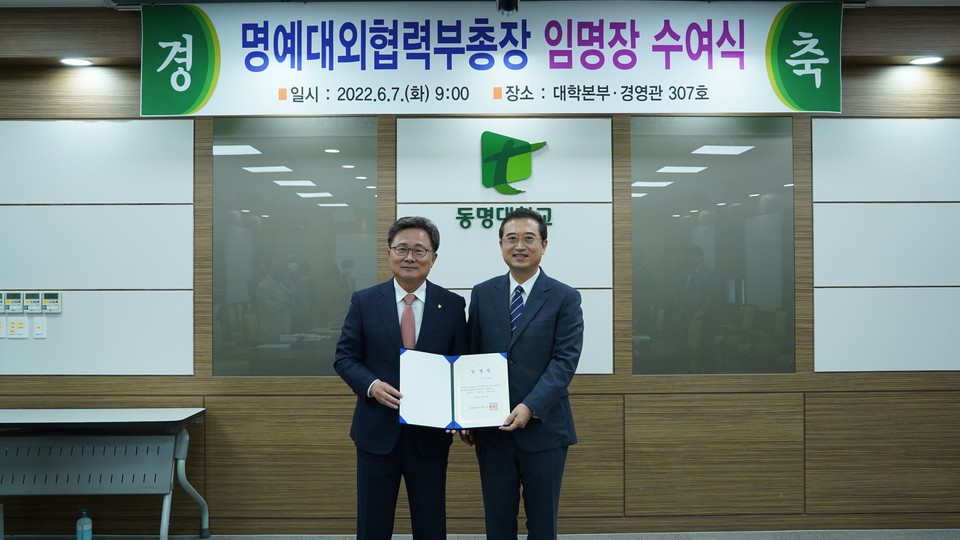 [한국대학신문 조영은 기자] 김대규 남원청년문화희망포럼 이사장이 동명대 명예대외협력부총장에 임명됐다. 임기는 2024년 5월 31일까지 2년이다.
