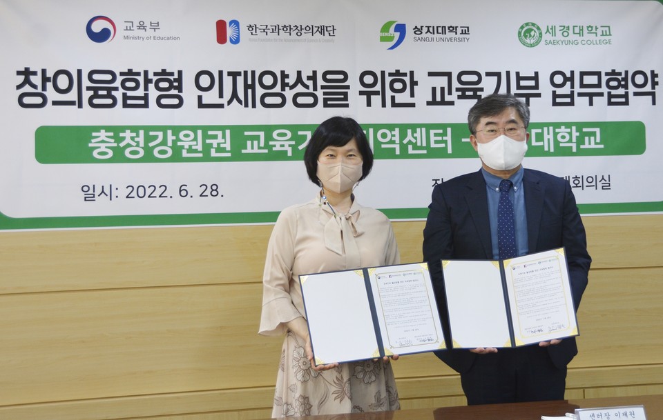 [한국대학신문 조영은 기자] 세경대학교(총장 심윤숙)는 상지대 충청강원권 교육기부 지역센터(센터장 이제원)와 ‘교육기부 활성화를 위한 업무협약’을 체결했다고 29일 전했다.