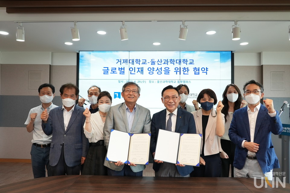[한국대학신문 이원지 기자] 울산과학대학교(총장 조홍래)가 동부캠퍼스 행정본관 2층 교무회의실에서 거제대와 글로벌 인재 양성을 위한 업무협약을 29일 체결했다.