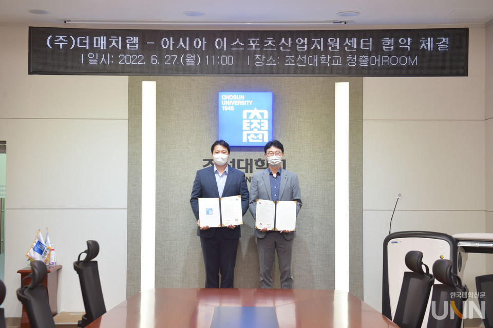 [한국대학신문 이원지 기자] 조선대학교(총장 민영돈)는 아시아 e스포츠산업지원센터가 e스포츠 에듀테크 스타트업 ㈜더매치랩과 ‘e스포츠 교육 활성화’를 위한 업무협약을 체결했다고 6일 전했다.