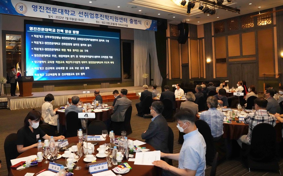 [한국대학신문 조영은 기자] 영진전문대학교(총장 최재영)는 선취업후진학지원센터 출범식을 15일 대구 그랜드호텔에서 개최했다. 출범식에는 최재영 총장을 비롯해 한국산업인력공단, 대구시교육청, 직업계고, 기업 관계자 등이 참석했다.