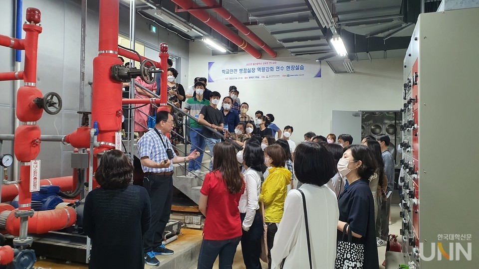 연수는 춘해보건대 국제컨퍼런스홀과 다목적시뮬레이션센터의 복도, 지하기계실, 소방펌프실을 순회하며 각종 장비 조작ㆍ현장 작동원리, 유지보수방법에 대해서 질의응답식으로 실시했다.