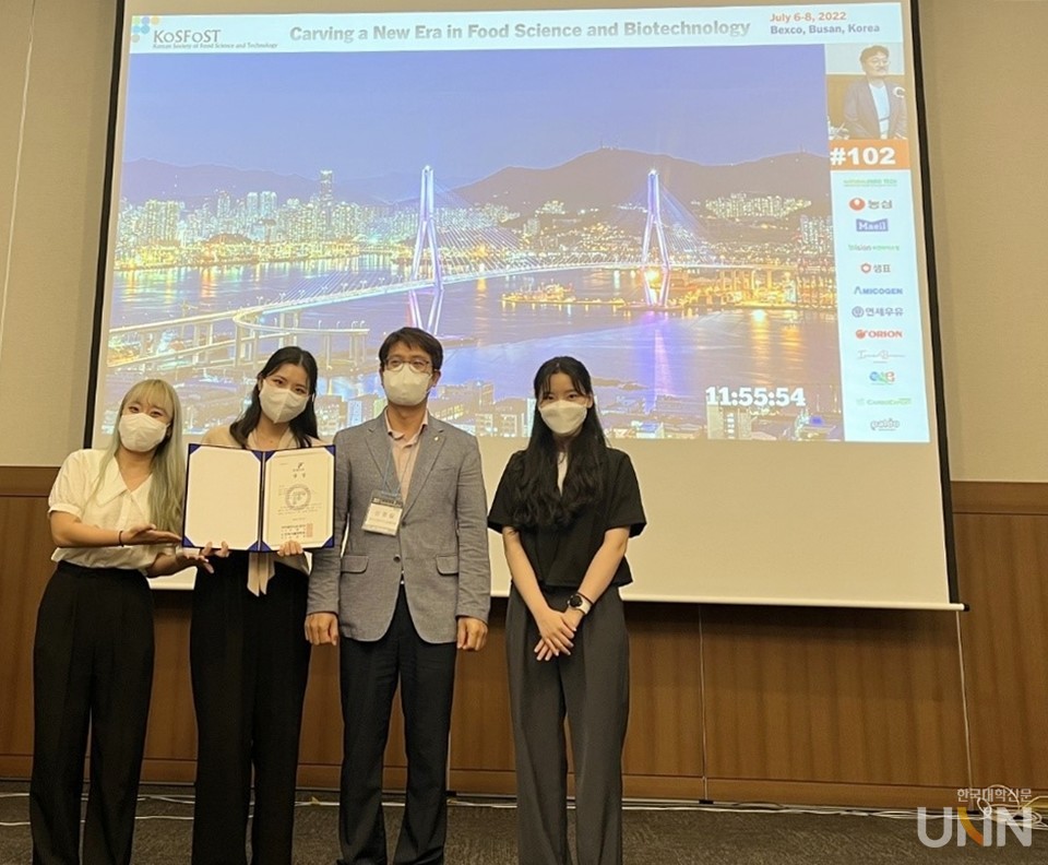 [한국대학신문 이원지 기자] 성신여자대학교(총장 이성근)는 바이오식품공학과 학부생으로 구성된 팀이 6일 부산 벡스코에서 개최된 2022 한국식품과학회 국제학술대회 학부생 아이디어 경진대회에서 1등상인 최우수상을 받았다고 전했다.