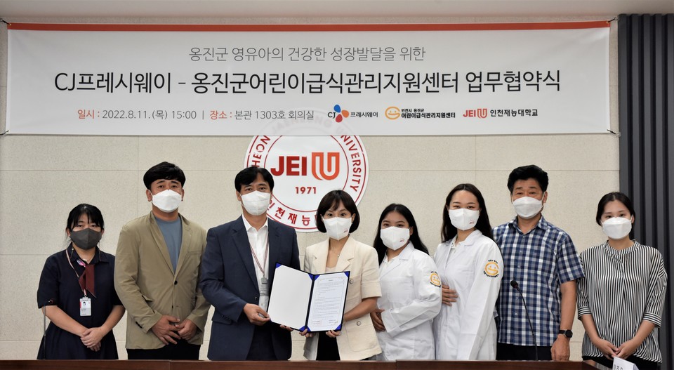 김진형 총장은 “옹진군은 지리적 여건상 힘든 점이 있지만 아이들을 위한 위생과 영양적인 질 향상은 반드시 이뤄져야 하는 부분이다”면서 “이번 CJ프레시웨이와 업무협약으로 체계적인 영양관리를 위한 교육지원이 가능할 것으로 기대한다”고 말했다.