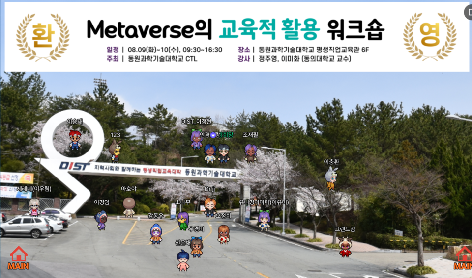 8일부터 10일까지 3일간 열린 워크숍은 ‘Metaverse 기반 수업, 어떻게 할 것인가?’를 주제로 진행됐다. 메타버스 플랫폼인 ZEP‧이프랜드‧제페토를 활용해 다양한 학습공간을 구성하고 교육 현장에서 실제 적용할 수 있는 실습 과정으로 진행됐다.