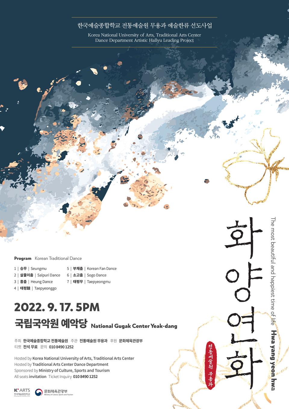 한국예술종합학교 전통예술원(원장 임준희)이 주최하고 문화체육관광부가 후원하는 이번 공연은 한국 전통 민속무용의 아름다움을 전 세계에 널리 알리고, 또 하나의 한류 K-컬처로 자리잡을 수 있도록 희망하는 몸짓을 선보인다.