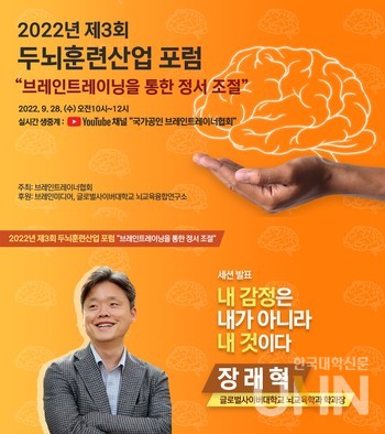브레인트레이너협회가 주최하는 ‘2022 두뇌훈련산업포럼’은 글로벌사이버대 뇌교육융합연구소의 후원을 받아 ‘브레인 트레이닝을 통한 정서조절’을 주제로 진행된다. 앞서 지난 4월에 ‘두뇌훈련산업의 미래 전망과 발전방안’, 7월에 ‘뇌파코칭 산업의 미래 전망’에 대해 포럼이 진행된 바 있다.