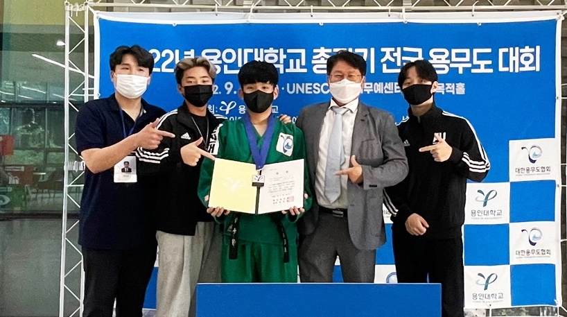 [한국대학신문 조영은 기자] 안산대학교(총장 안규철) 레저스포츠케어과 박준형 씨가 24일 충주 유네스코 국제무예센터에서 열린 ‘2022 용인대학교 총장기 전국용무도대회’에서 일반부 65kg급 은메달을 획득했다.
