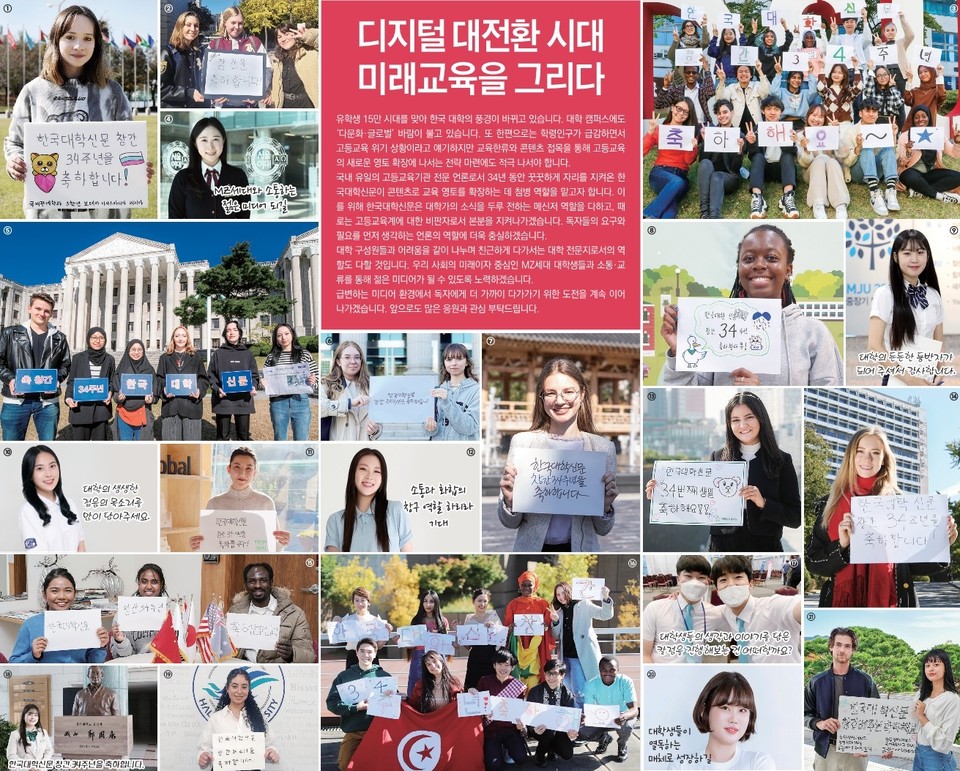 국내 유일의 고등교육기관 전문 언론으로서 34년 동안 꿋꿋하게 자리를 지켜온 한국대학신문이 콘텐츠로 교육영토를 확장하는데 앞장서고자 합니다. 이를 위해 한국대학신문은 대학가의 소식을 두루 전하는 메신저 역할을 다하고, 때로는 고등교육계에 대한 비판자로서 본분을 지켜나가겠습니다. 독자들의 요구와 필요를 먼저 생각하는 언론의 역할에 더욱 충실하겠습니다.