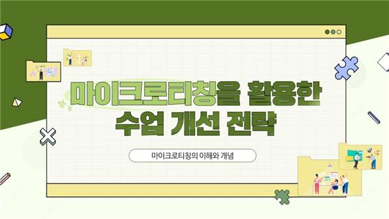 마이크로티칭을 활용한 수업 개선 전략은 조용개 경남대 교수와 협업해 제작한 온라인 강의로 잘 가르치는 교수자가 되기 위한 30가지 마이크로티칭 기법을 제공하고 있다.