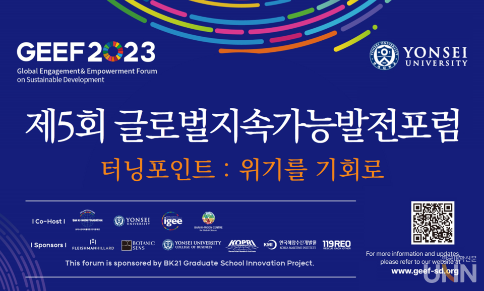 [한국대학신문 이정환 기자] 연세대학교(총장 서승환)는 2월 2~3일 ‘터닝포인트; 위기를 기회로’라는 주제로 ‘제5회 글로벌지속가능발전포럼(GEEF2023)’을 개최한다고 밝혔다.