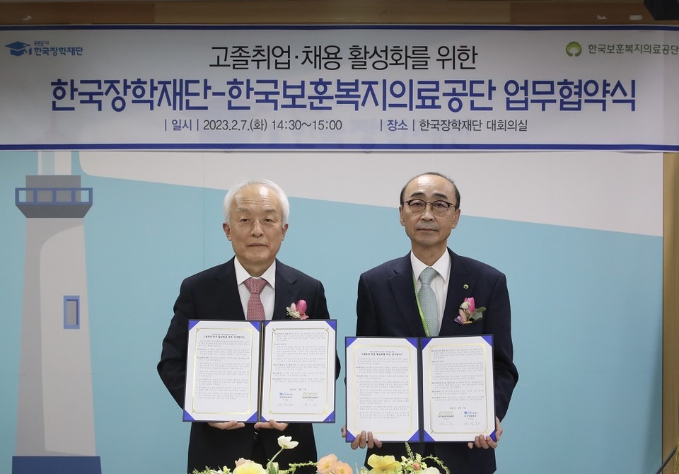 [한국대학신문 임지연 기자] 한국장학재단은 7일 한국보훈복지의료공단과 한국장학재단 본사에서 고졸취업·채용 활성화를 위한 업무협약을 체결했다.