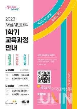 [한국대학신문 백두산 기자] 서울시민대학이 오는 28일부터 2023년 1학기 교육과정 학습자를 선착순 모집한다. 총 151개 평생교육 강좌로, 시민대학 캠퍼스와 대학연계 시민대학, 온라인 시민대학에서 열린다.