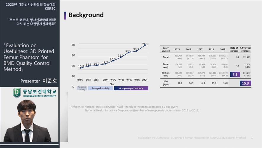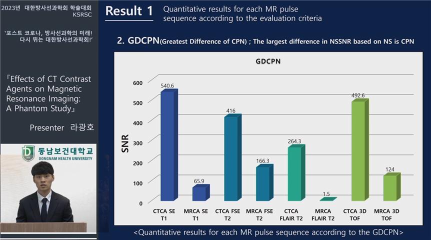 동남보건대 방사선학과에서는 미래지향적 방사선 창의인재 양성을 위해 3편의 학술연구 논문을 발표했다. △3학년 이준호 학생들 ‘Evaluation on Usefulness: 3D Printed Femur Phantom for BMD Quality Control MethodI(공저자 이정, 오한샘, 문재원, 정유원, 진성현, 홍종민 및 지도교수: 홍다영, 이인자)’ △3학년 이영훈 학생은 ‘Usefulness of DLIR Algorithm application in Pediatric Abdominal CT Examination(공저자 김성래, 최우일, 김연주, 김은서, 김해인, 조인완 및 지도교수: 김현주, 윤준)’ △2학년 라광호 학생은 ‘ffects of CT Contrast Agents on Magnetic Resonance Imaging: A Phantom Study(공저자 박성희, 오영석, 임지우 및 지도교수 양현진, 김정수)’을 주제로 발표했다.
