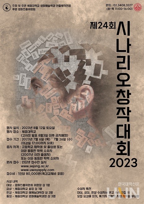 [한국대학신문 이정환 기자] 세종대학교(총장 배덕효) 영화예술학과가 8월 12일 ‘제24회 세종 청소년 시나리오 창작대회’를 개최한다.