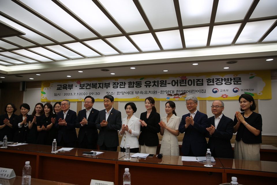 [한국대학신문 정혜정 기자] 한양여자대학교(총장 나세리)는 지난 12일 이주호 사회부총리 겸 교육부 장관·조교홍 보건복지부 장관과 함께 한양여자대 부속유치원과 한양대 한양어린이집 현장 방문을 진행했다.