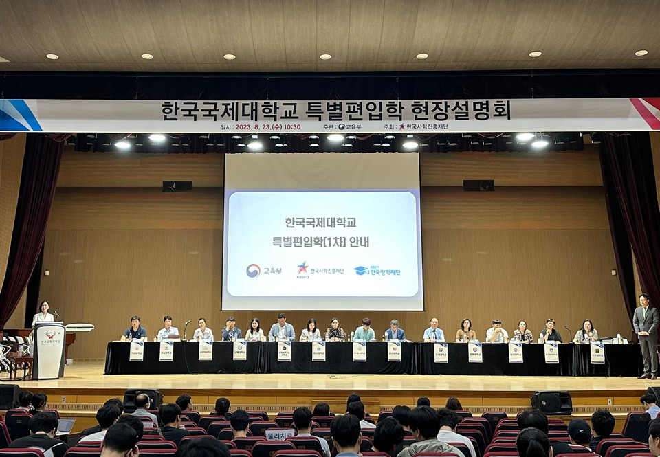 [한국대학신문 임지연 기자] 한국사학진흥재단(이사장 홍덕률, 이하 KASFO)은 학교법인 일선학원 파산선고에 따라 폐교가 확정된 한국국제대 재적학생들의 2023학년도 2학기 특별편입학 지원을 위해 23일 현장설명회를 개최했다고 25일 밝혔다.