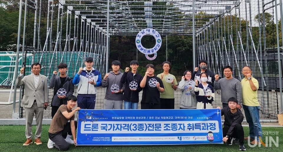 [한국대학신문 이정환 기자] 호남대학교 로봇드론공학과(학과장 김광택)는 (사)대한드론협회(대표 김민)와 공동으로 현장 실무형 지역인재 양성과정 사업의 일환으로 광주·전남지역 직업계고교생들을 대상으로 ‘드론 국가자격(3종) 전문 조종자 취득과정’을 10월 7일까지 4주간 주말을 이용해 운용했다.