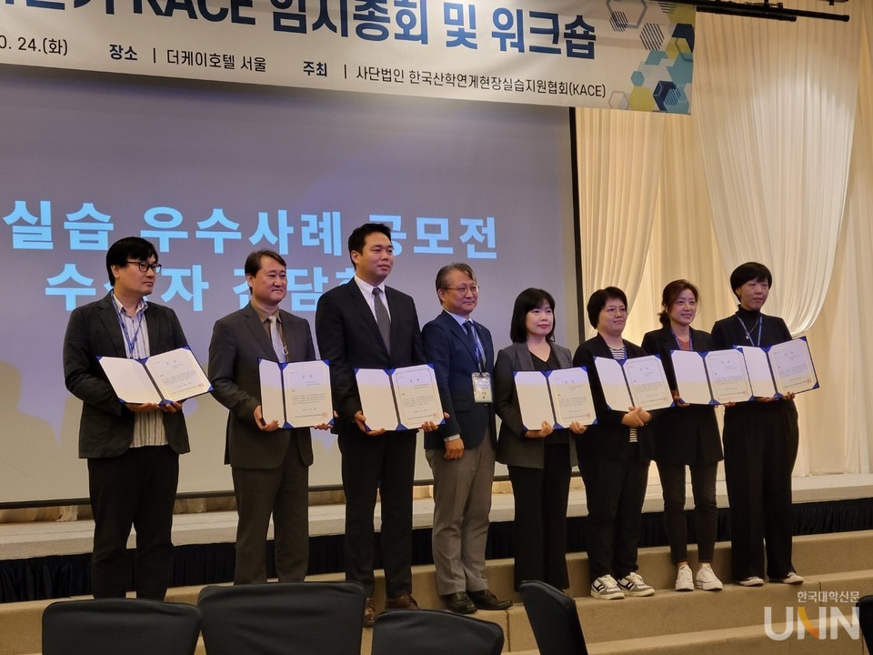 KACE는 9월 한 달 동안 전국 대학교(4년제, 2년제) 현장실습 운영 부서를 대상으로 ‘표준현장실습학기제 공모전’을 통해 심사를 거쳐 대상, 금상 각 1팀과 은상 2팀, 동상 3팀 등 7팀을 선발했다.