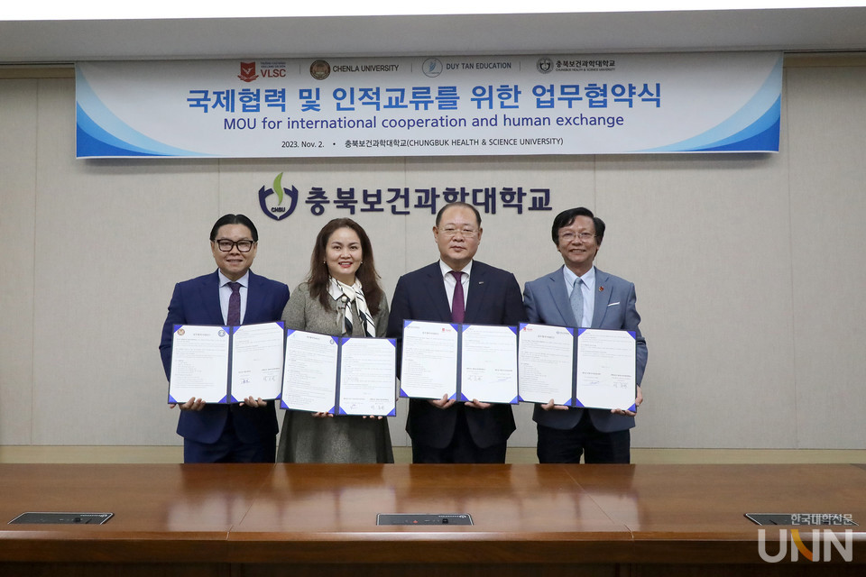 [한국대학신문 이정환 기자] 충북보건과학대학교(총장 박용석)는 베트남 반랑대(Van Lang Saigon College), 캄보디아 첸라대(Chenla University), 베트남 호치민시 직업협회와 국제협력 및 인적교류를 위한 업무협약을 체결했다.