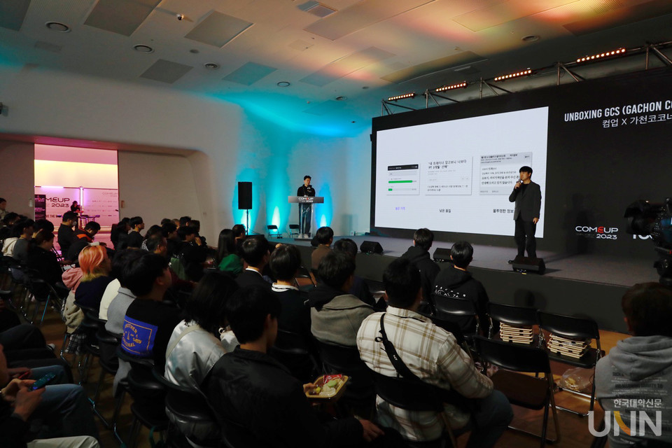 가천대는 가천코코네스쿨 학생들에게 스타트업 혁신 사례를 배우고 기업가정신을 고취할 수 있는 기회를 제공하고 대외적으로 가천코코네스쿨의 핵심 역량을 소개하기 위해 COME UP에 참여했으며 ‘Unboxing GCS(Gachon Cocone School)’이라는 제목으로 세션을 열었다.