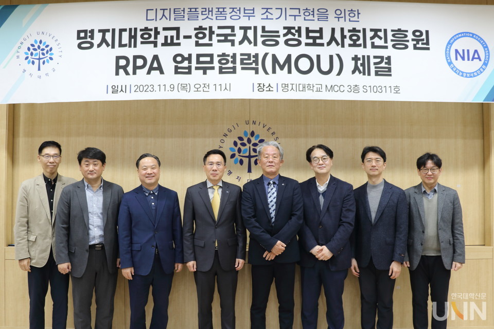 [한국대학신문 이정환 기자] 명지대학교(총장 유병진)가 한국지능정보사회진흥원과 공공기관을 비롯한 국내 산업 전반 프로세스 자동화를 위한 산학협력 협약을 9일 체결했다.