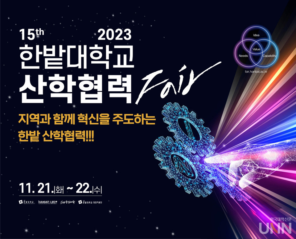 [한국대학신문 이정환 기자] 국립한밭대학교(총장 오용준) 3단계산학연협력선도대학육성사업단(LINC 3.0)은 오는 21일과 22일 이틀간 교내 체육관 및 산학연협동관 등에서 ‘2023 한밭대학교 산학협력 Fair’를 개최한다고 밝혔다.