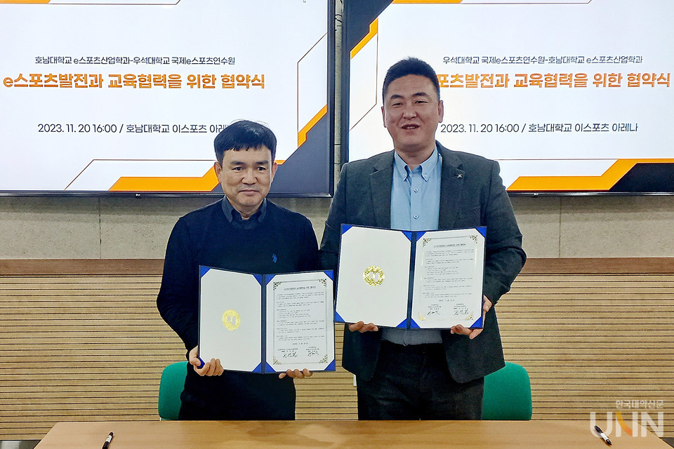 [한국대학신문 이정환 기자] 호남대학교 e스포츠산업학과(학과장 정연철)는 21일 교내 현명관 이스포츠아레나에서 우석대 국제e스포츠연수원(원장 여형일)과 협약을 체결, 전문인력 양성을 위한 상호 교류와 협력, 관련분야 교육개발 및 연구를 함께 추진해 나가기로 했다.