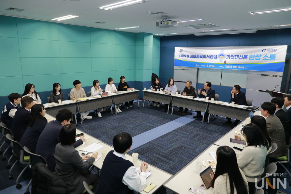 이날 간담회는 MZ세대인 대학생 언론인들로부터 대학생과 청년들의 애로사항을 듣고 소통하기 위해 대통령실 대외협력비서관실의 요청으로 이루어졌다. 대통령실에서는 김용진 대외협력비서관, 박대기 국장 등 7명이 참석했다. 가천대에서는 김충식 특임부총장을 비롯해 오대영 신문방송국장, 신문 기자 12명이 참석했다.