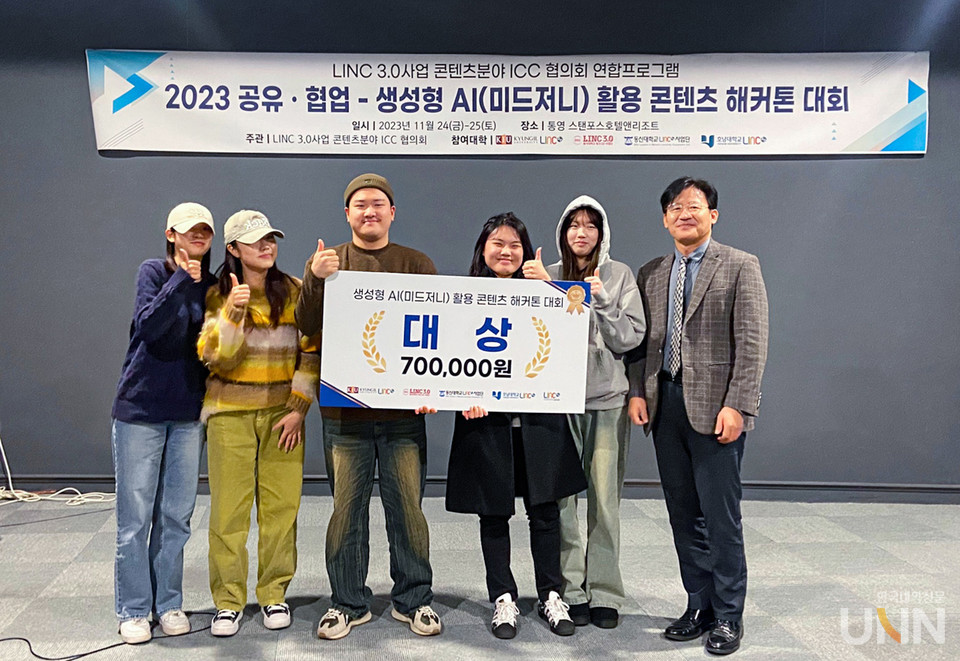 [한국대학신문 이정환 기자] 경일대학교(총장 정현태) 재학생들이 지난달 24~25일 경남 통영에서 열린 ‘2023 공유·협업 생성형 AI(미드저니) 활용 콘텐츠 해커톤 대회’에서 대상을 차지했다.
