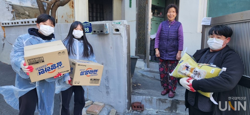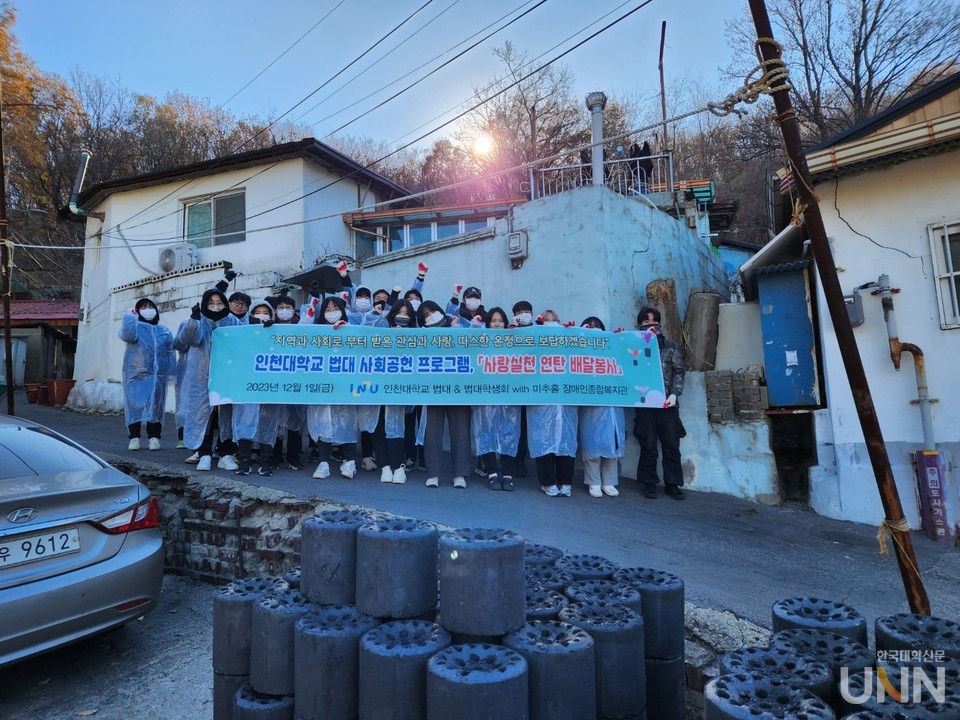 지난 1일 인천광역시 미추홀구 학익동 햇골길에서 인천대 법학부 재학생과 교직원 등 17명이 사랑의 연탄 기증 및 배달 봉사와 생필품 지원 행사를 개최했다. 학익동 햇골길에 거주하며 연탄보일러를 사용하는 9가구 대상으로 총 2700장의 연탄을 기증함과 동시에 배달 봉사를 실시하고, 10가구에는 쌀과 라면 등 생필품을 전달했다. 더불어 인천지역 장애인 거주 가정에서 동계기간 활용할 수 있도록 2인용 전기장판 24개를 마련해 미추홀 장애인종합복지관에 기탁하기도 했다.