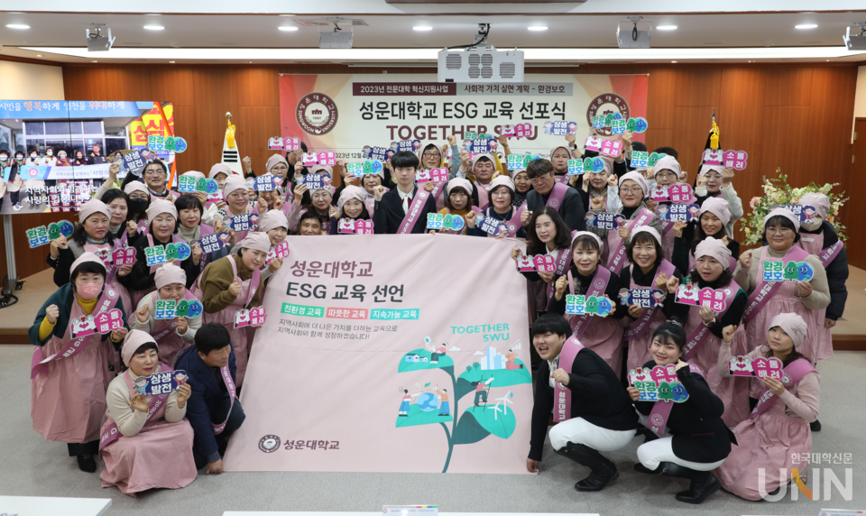 [한국대학신문 이정환 기자] 성운대학교(총장 윤지현)는 지난 28일 교직원 및 재학생 100여 명이 참석한 가운데 창의관 대강당에서 ‘ESG 교육 선포식-TOGETHER SWU’를 개최했다.
