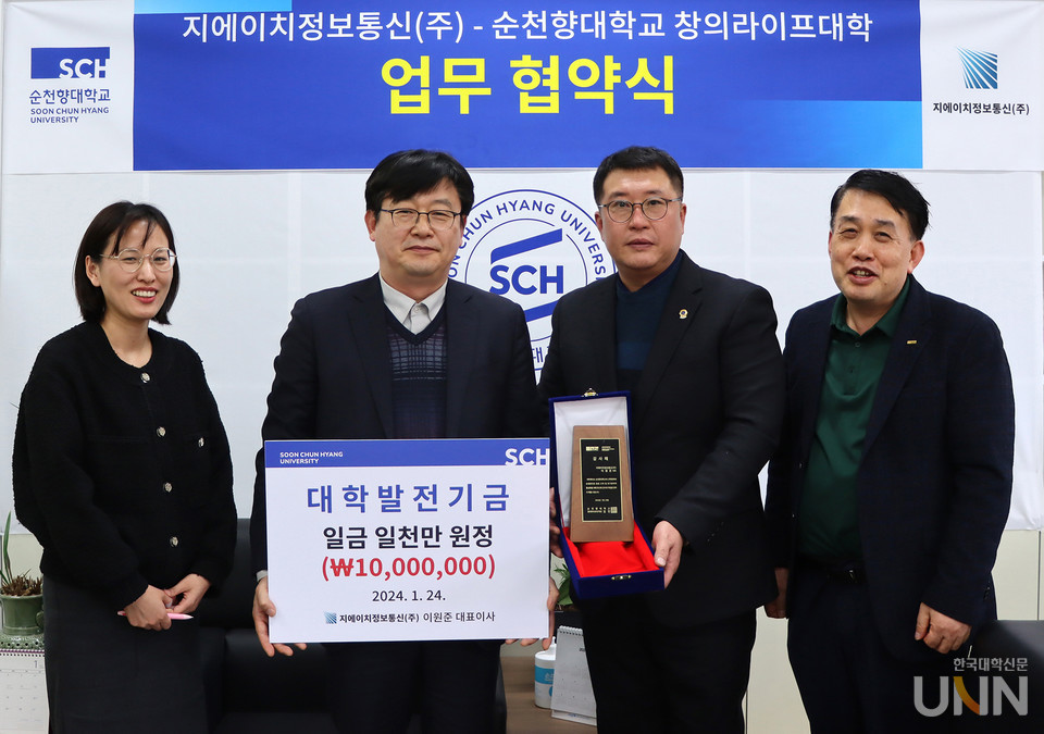 [한국대학신문 정수정 기자] 순천향대학교(총장 김승우)는 최근 충청남도 금산군에 위치한 지에이치정보통신(주)과 근로자 인재 양성과 산·학 교육훈련 분야 발전을 위한 업무 협약을 체결했다고 26일 밝혔다.