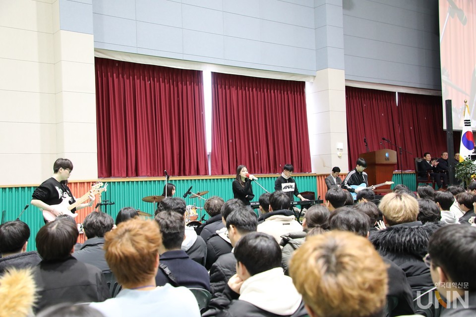 입학식은 △입학허가 선언 △신입생 선서 △입학성적 우수자 및 학부(과) 수석 합격자 장학증서 수여 △신입생 대표 인사말 △입학식 환영사 및 내빈 축사 △재학생 축하공연 순으로 진행됐다.
