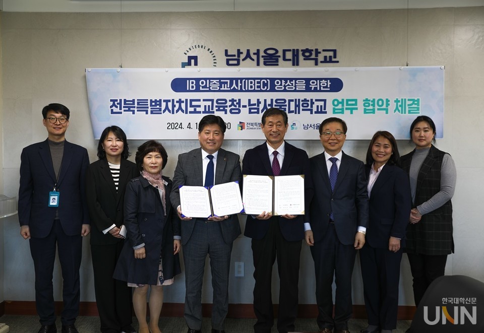 [한국대학신문 정수정 기자] 남서울대학교(총장 윤승용)는 1일 본관 총장실에서 전북특별자치도교육청과 IBEC 양성을 위한 업무협약을 체결했다.