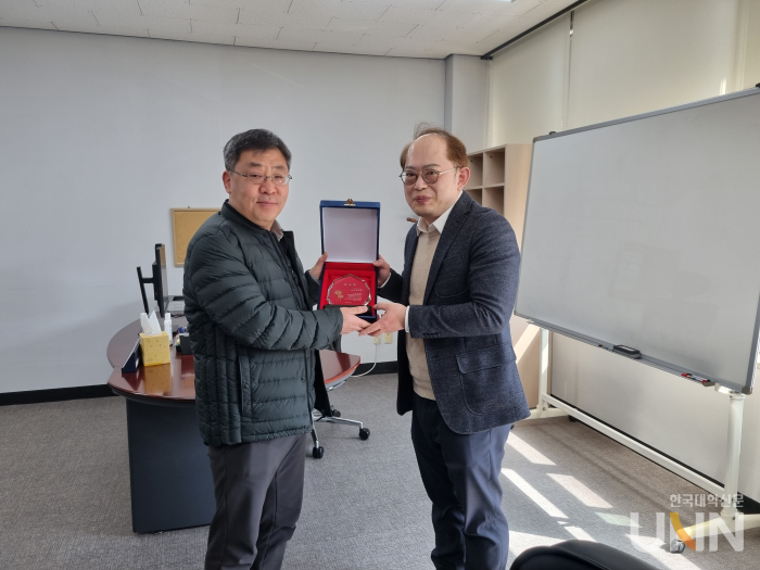 [한국대학신문 이정환 기자] 한국외국어대학교(총장 박정운) 창업보육센터(센터장 은창선)는 지난달 18일, 우수한 경영 성과를 달성하고 센터 발전에 기여한 우수 졸업기업을 대상으로 감사패 시상식을 했다. 이날 행사에서는 은창선 센터장이 우수 졸업기업으로 선정된 ‘㈜알에프투디지털과 (주)샤인소프트’에 감사패를 전달했다.