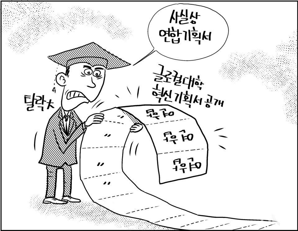 장영우 화백 <한국대학신문> 관련기사 글로컬대학 예비지정, ‘일반 사립대‧전문대’ 선전…“대학 유형‧지역 안배 고려하지 않아” 글로컬대학30 도전장 낸 ‘전문대’…교육부 발표나자 “오! 아~” 희비 엇갈려 (종합)‘2024 글로컬대학’에 20곳 예비지정, ‘연합’ 통(通)했나…사실상 50% 선정돼 키워드 #대학세평 #장영우 #글로컬대학 #혁신기획서 #연합대학 한국대학신문 news@unn.net 다른기사 보기 저작권자 © 한국대학신문 무단전재 및 재배포 금지 댓글삭제 삭제한 댓글은 다시 복구할 수 없습니다. 그래도 삭제하시겠습니까? 비밀번호 닫기 이 기사에 대한 당신의 생각은? 0 댓글 접기 댓글입력 권한이 없습니다. 댓글 내용입력 비회원 로그인 이름 비밀번호 댓글 내용입력 댓글쓰기 계정을 선택하시면 로그인·계정인증을 통해 댓글을 남기실 수 있습니다. 회원 로그인 이름 비밀번호 자동등록방지 로그인 옵션 창닫기