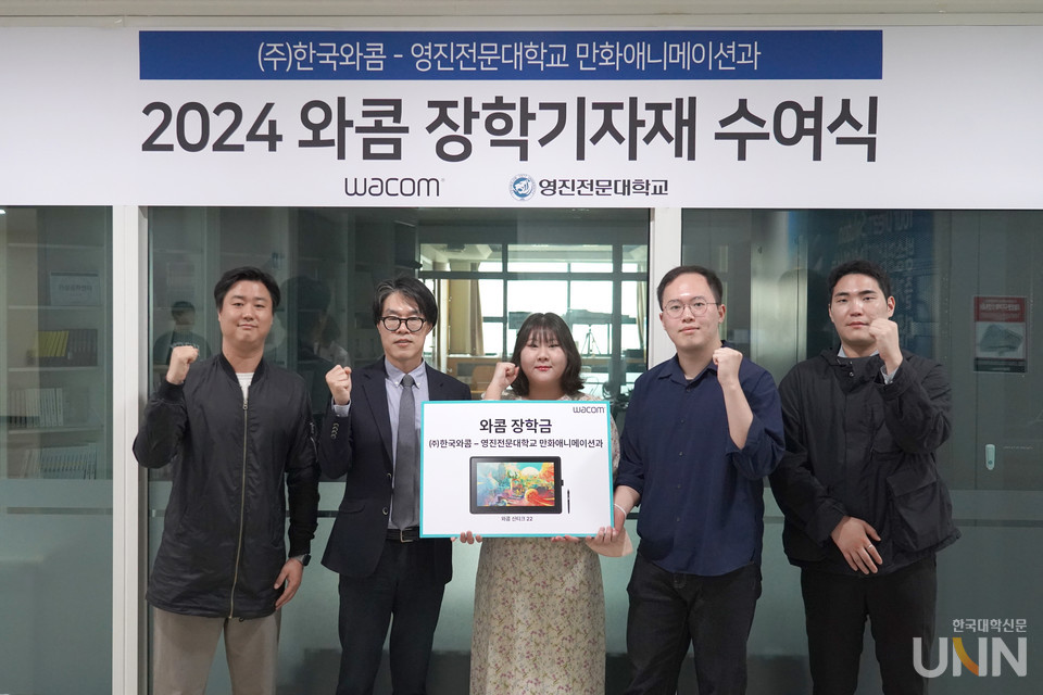 [한국대학신문 이정환 기자] 영진전문대학교(총장 최재영)는 만화애니메이션과가 한국와콤(대표 김주형)의 ‘와콤 웹툰 장학금 프로그램’ 2024년 첫 수혜 대학으로 선정돼 장학기자재를 기탁받았다고 22일 밝혔다.
