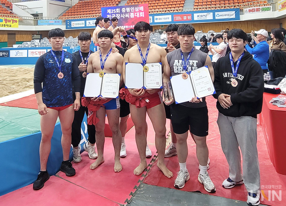 [한국대학신문 이정환 기자] 울산대학교 씨름부(감독 주명찬)가 제25회 증평인삼배 전국장사씨름대회에서 대학부 단체전 3위와 개인전 경장급·역사급에서 우승을 차지했다.