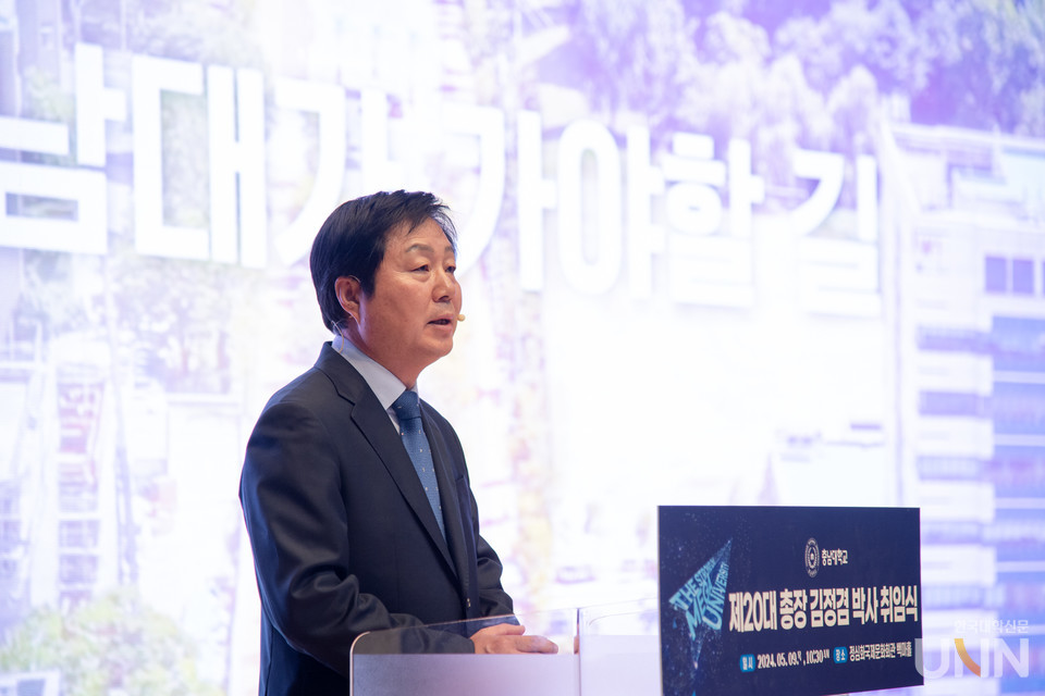 김정겸 총장은 취임사에서 “개교 72년을 맞는 충남대는 지역과 함께하는 세계적인 대학이 되기 위한 노력을 해 오고 있다”며 “급격한 변화와 위기 속에서 충남대의 도약을 위해 2040 비전으로 ‘미래 사회를 선도할 강한 대학, THE STRONG CNU, MEGA UNIVERSITY’를 선포한다”고 말했다.