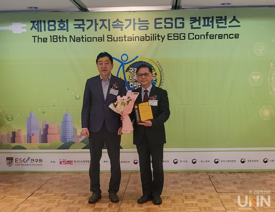 [한국대학신문 이정환 기자] 선린대학교(총장 곽진환)가 지난 10일 롯데호텔 사파이어볼룸에서 한국언론인협회, 고려대학교 ESG연구원이 주최하고 기획재정부, 외교부, 보건복지부, 환경부, 고용노동부, 공정거래위원회, 금융위원회, 식품의약품안전처, 동반성장위원회가 후원하는 제18회 국가지속가능 ESG 컨퍼런스에서 ‘ESG 교육 브랜드 대상’을 수상했다.