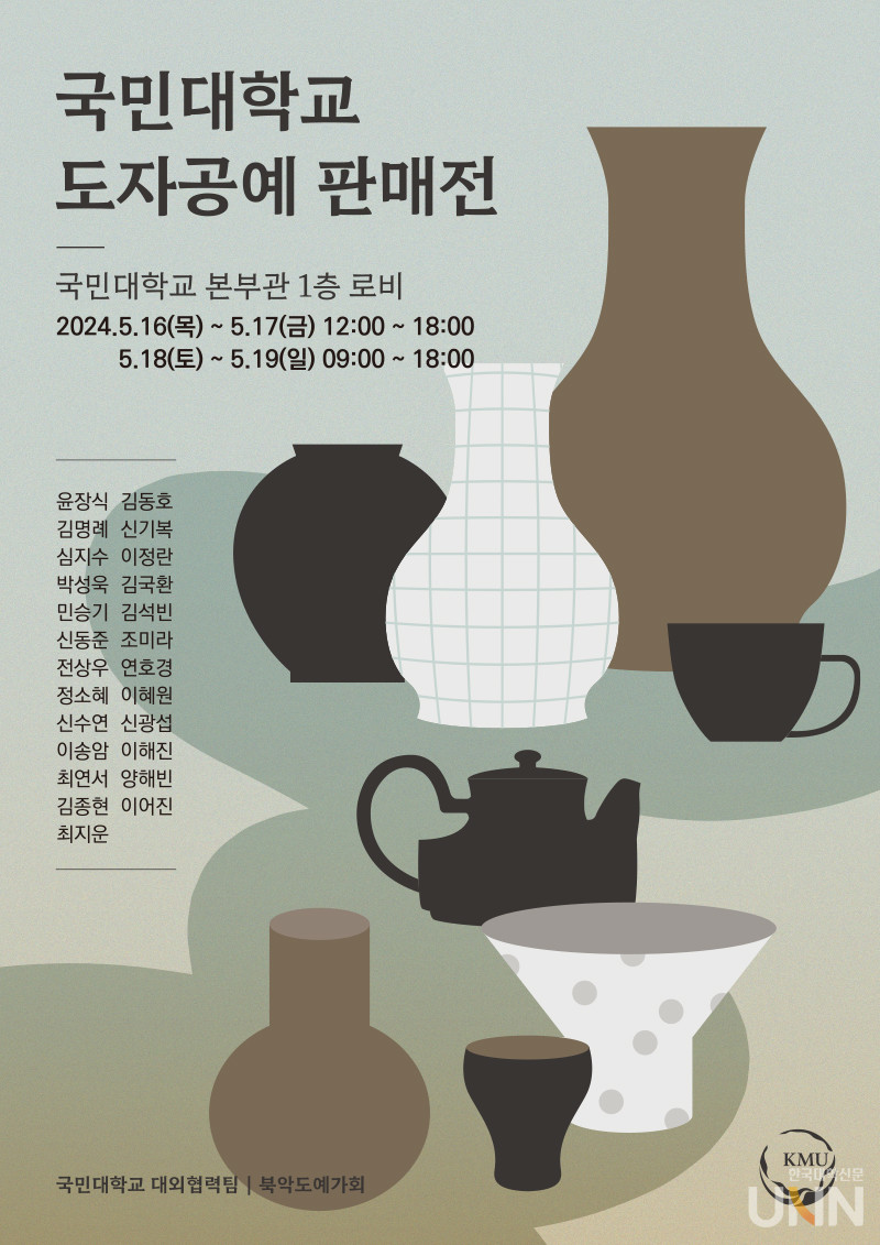 [한국대학신문 이정환 기자] 국민대학교(총장 정승렬)가 16일(목)부터 19일(일)까지 4일간, 본부관 1층 로비에서 ‘제1회 국민대학교 도자공예판매전’을 개최한다.