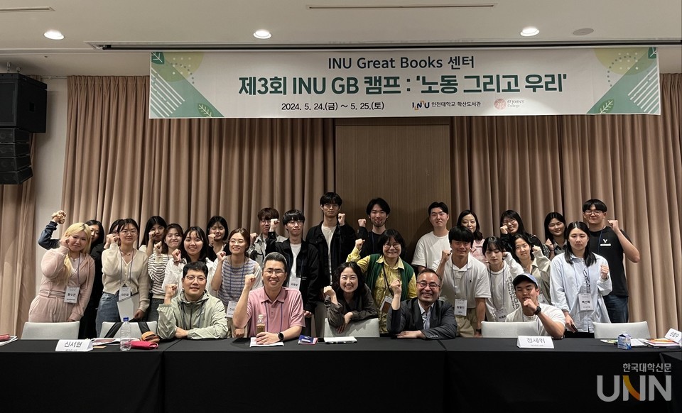 [한국대학신문 이정환 기자] 인천대학교(총장 박종태) 학산도서관 Great Books 센터는 「노동 그리고 우리」라는 대주제하에 세인트존스대학(St. John’s College, SJC)과 함께하는 제3회 GB 캠프를 영종도 더위크앤리조트에서 개최했다. 이번 캠프에서는 인천대학교 학생들과 세인트존스대학 학생들이 함께 고전 및 명저를 기반으로 한 토의세미나를 통해 노동을 둘러싼 사회문제와 인간다운 삶을 위한 사회적 조건에 대해 진지한 성찰과 열띤 토론을 펼쳤다. 노동 관련 텍스트를 통해 참가자들은 일과 효율성과 돈을 호환 개념으로 간주하며, 인간의 도구화를 조장하는 자본주의의 짙은 그늘을 들여다보고 인간다운 삶을 위한 사회적 여건에 대한 심도 있는 논의를 할 수 있었다.