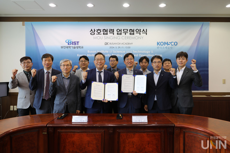 협약식 행사에 한국조폐공사 성창훈 사장과 부산과학기술대 이상석 부총장 등 관계자 11명이 참석한 가운데 양 기관의 실질적인 협력관계 구축과 구체적인 실행 방안 등을 논의했다.
