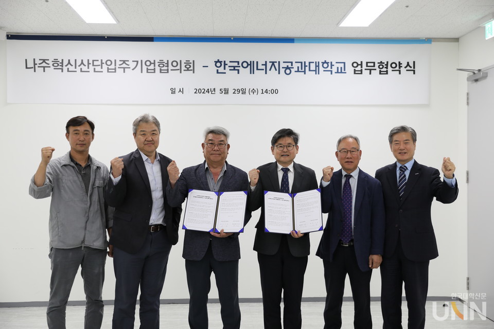[한국대학신문 이정환 기자] 켄텍(한국에너지공과대학교, 박진호 총장직무대행)은 29일 나주혁신산단입주기업협의회(회장 이남)와 지역사회 상생 및 발전을 위한 업무협약을 체결했다고 밝혔다.