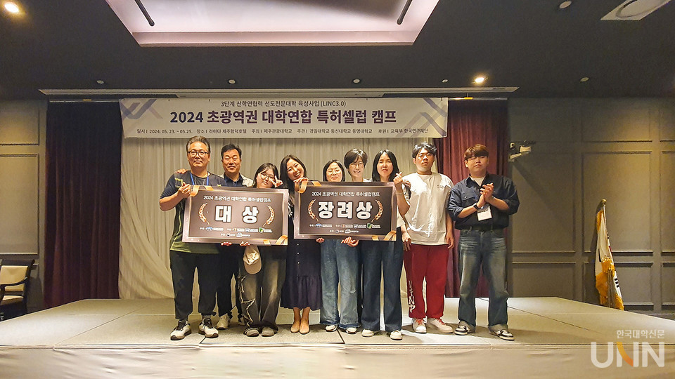 [한국대학신문 이정환 기자] 경일대학교(총장 정현태)는 지난 23일부터 25일까지 2박 3일간 제주 함덕 라마다호텔에서 개최된 ‘2024 초광역권 대학연합 특허셀럽캠프’에서 대상을 차지했다.