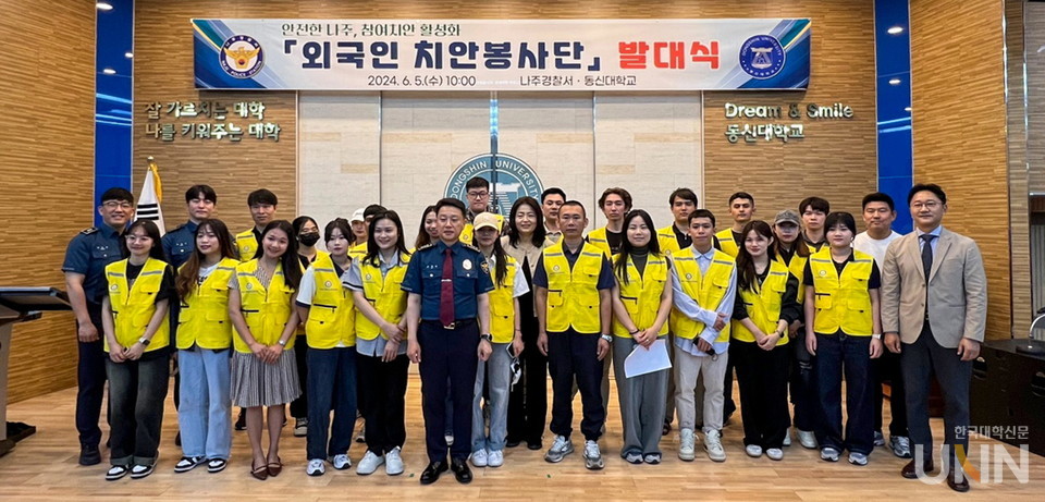 [한국대학신문 이정환 기자] 외국인 유학생들이 직접 치안 활동에 참여해 ‘안전한 나주’ ‘외국인이 살기 좋은 나주’를 만들어 가는 ‘외국인 치안봉사단’ 발대식이 지난 5일 동신대 대정3관 투게더홀에서 개최됐다.