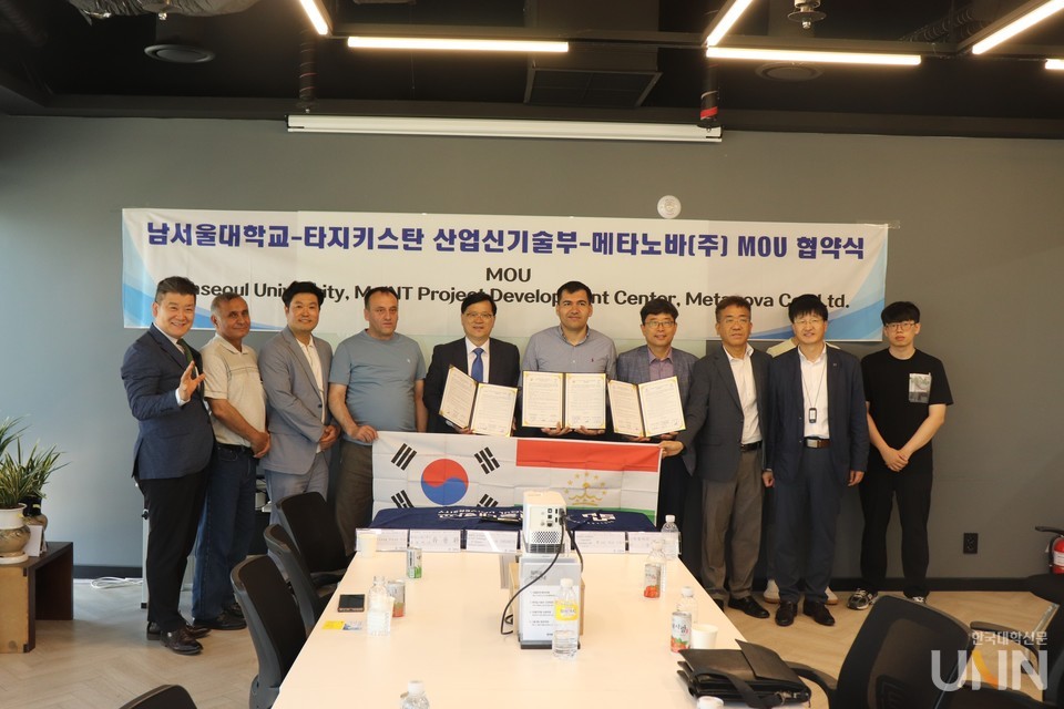 이번 협약식에는 남서울대 조원길 산학협력단장과 글로벌융합센터장 김대유 교수, 타지키스탄 산업신기술부 국제프로젝트개발 파비즈센터장, 메타노바(주) 유용환 대표가 참석했다. 메타노바(주)는 IT 및 스마트팜 기술 개발을 수행하는 남서울대 교수창업 기업이다.