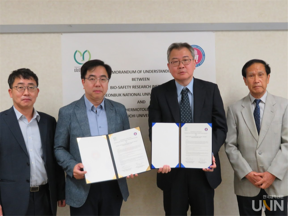전북대 생체안전성연구소 김범석 소장과 엄재구 교수는 최근 일본 야마구치대학을 방문해 이 대학 내열성 미생물 센터 관계자들을 만나 협력 방안을 논의하고 공식 협약을 체결했다.